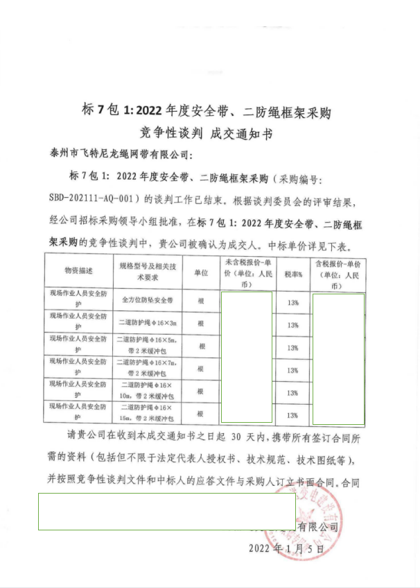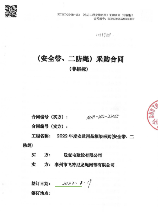 喜訊:2022年1月,我司喜與國(guó)家電網(wǎng)華中地區(qū)公司就安全帶、二防繩簽署年度框架協(xié)議