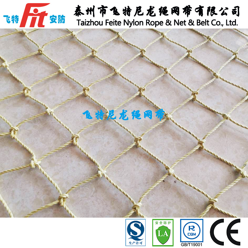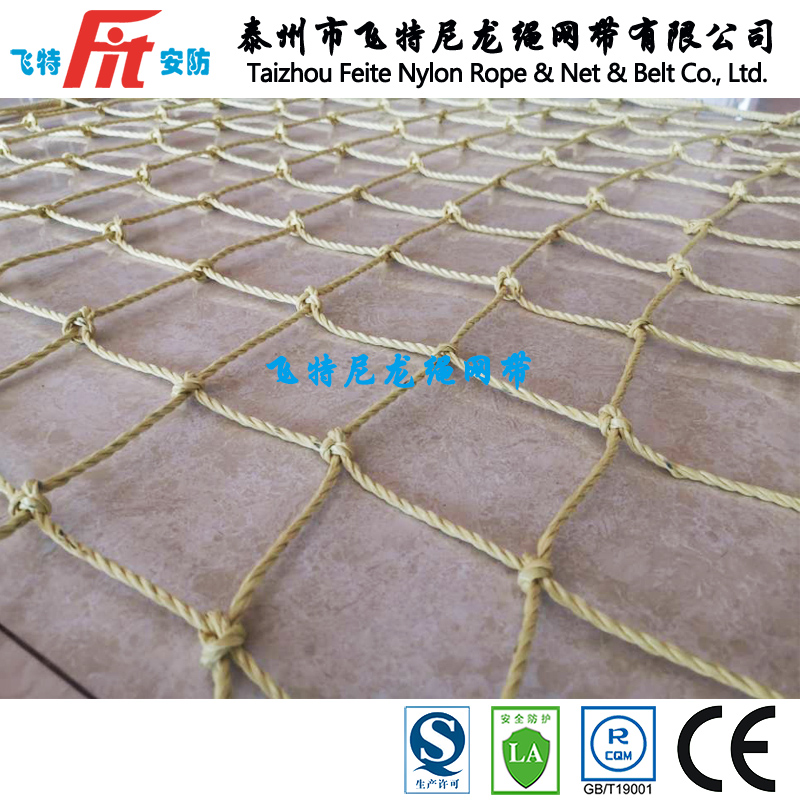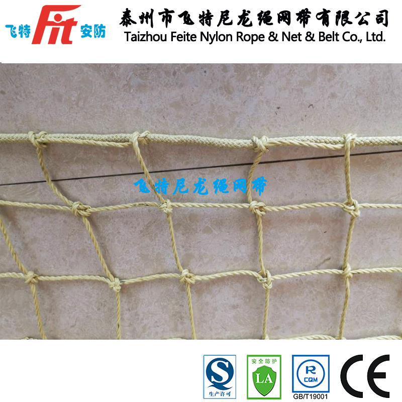 芳綸網(wǎng)繩是以芳綸1414纖維為原料編織而成,是一種新形復(fù)合高性能網(wǎng)繩.它具有極高的強度(大于28克/旦),是優(yōu)質(zhì)鋼材的5-6倍,模量是鋼材或玻璃纖維的2-3倍,韌性是鋼材的2倍,而重量僅為鋼材的1/5。芳綸的連續(xù)使用溫度范圍極寬,在﹣196。C至204℃范圍內(nèi)可長期正常運行。在150℃下的收縮率為0,在560℃的高溫下不分解不熔化,且具有良好的絕緣性和抗腐蝕性,生命周期很長 [1] 。